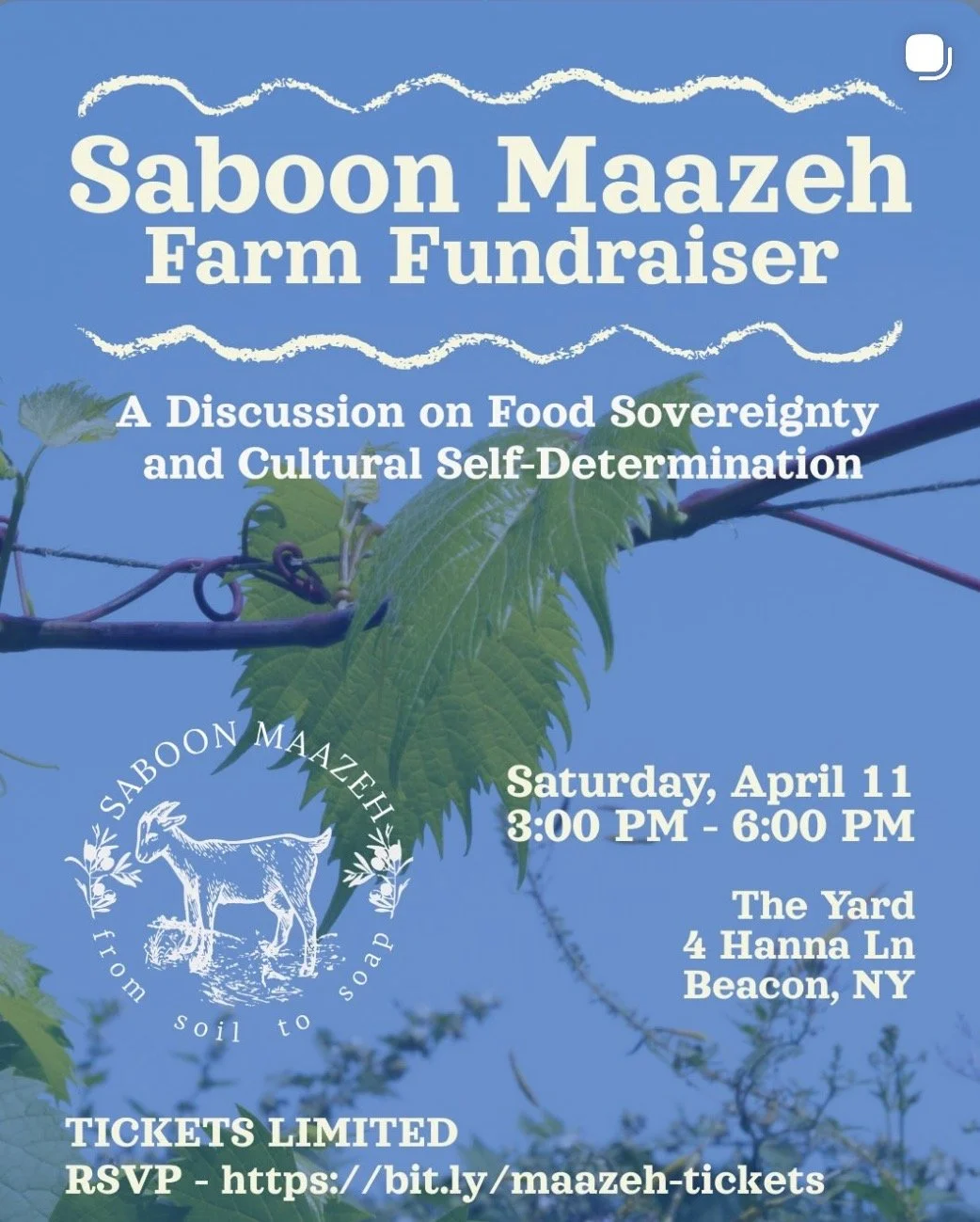 Join us for an afternoon of community empowerment and education, featuring a panel discussion with Dr. Justine Lindemann from Penn State and Joy Youwakim from Saboon Maazeh. The panel will cover challenges to food sovereignty in Lebanon and Palestine as well as address parallels to Turtle Island. We will also screen a short documentary about the farm's first season and talk about the farm's mission. There will be tote bags and soap available for purchase along with refreshments. Come ready to be engaged in your local food movement!